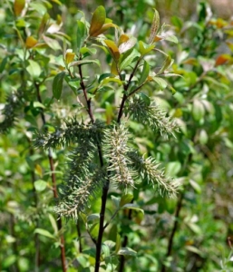 Ecologically, Pussy Willow is a valuable plant for wildlife, drawing early-season pollinators like bees with its catkins and providing cover for small birds and mammals. Its flexibility in wet conditions makes it perfect for rain gardens or streamside plantings, enhancing local biodiversity. Historically, its branches were used in basketry and crafts, while today it’s prized for its early spring beauty and ecological contributions. It typically lives 20–50 years under optimal conditions.